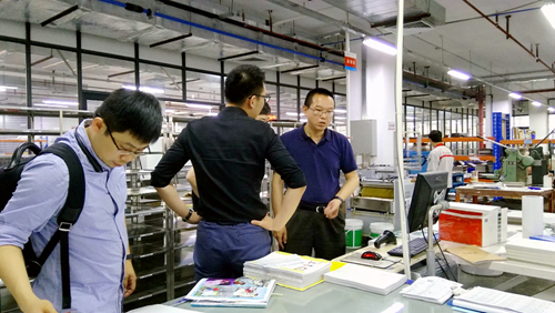 2018年4月12日,中國印刷技術研究院-數(shù)字印刷事業(yè)部總經理郭春濤一行四人來訪天意有福,在副總經理董祖明的帶領下參觀了天意有福生產中心。隨后進入會議室,雙方就數(shù)字印刷技術發(fā)展與行業(yè)合作展開了深入的交流。